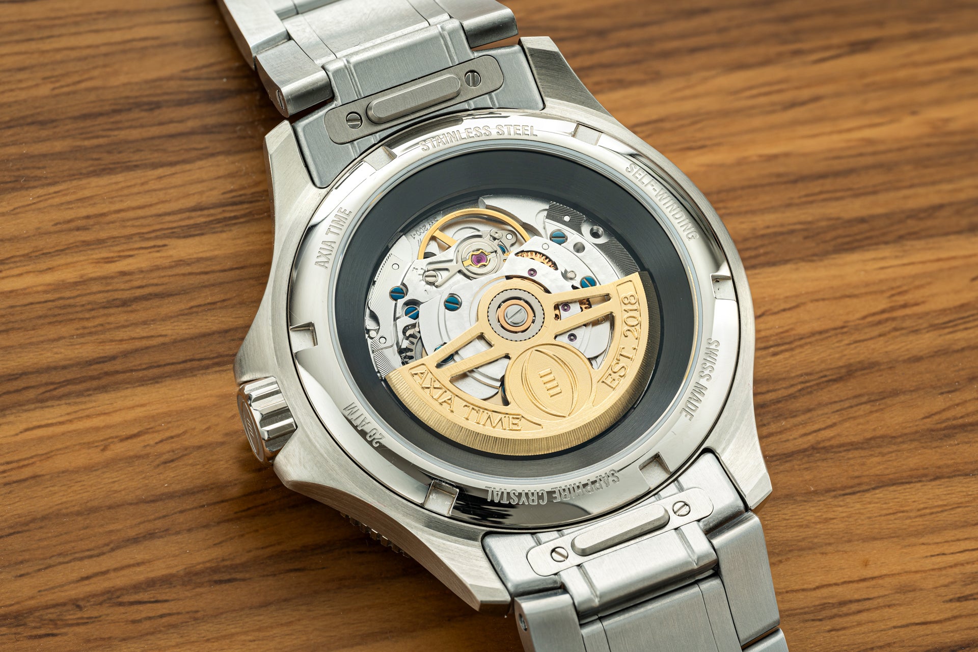Adding a custom rotor will take your design to the next level. Safely installed under the back sapphire crystal, your custom rotor will be protected from the elements and shine for generations.