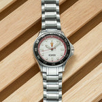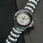 We go the extra mile with commemorative designs to celebrate – and elevate – what's important to you. Customizations for the CFP 2024-25 Arizona State Argos includes a matte white dial with a Pitch Fork logo at 12 o'clock, an etched repeating pattern with CFP logo, the College Football Playoff wordmark on the lower half of the dial, and "ROAD 2 ATLANTA" on the red chapter ring.