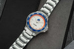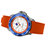 We go the extra mile with commemorative designs to celebrate – and elevate – what's important to you. Customizations for the CFP 2024-25 Boise State Argos includes a matte white dial with a Bronco logo at 12 o'clock, an etched repeating pattern with CFP logo, the College Football Playoff wordmark on the lower half of the dial, and "ROAD 2 ATLANTA" on the orange chapter ring.