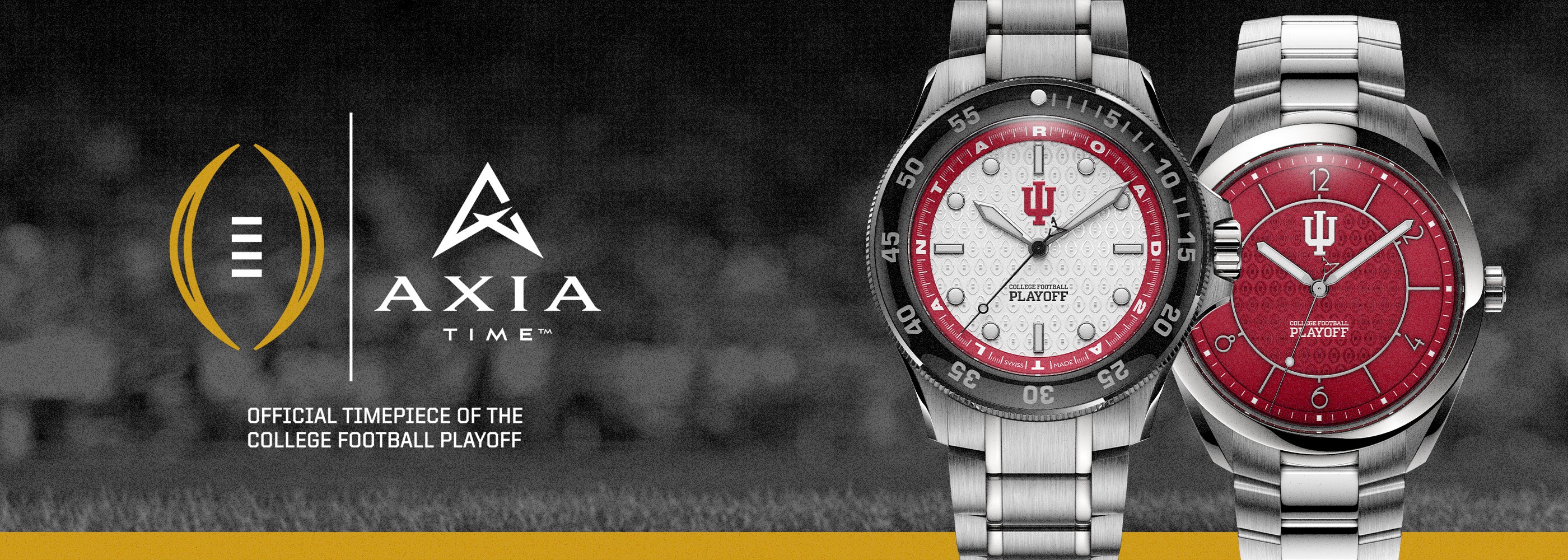 We go the extra mile with commemorative designs to celebrate – and elevate – what's important to you. Customizations for the CFP 2024-25 Indiana Argos includes a matte white dial with an IU logo at 12 o'clock, an etched repeating pattern with CFP logo, the College Football Playoff wordmark on the lower half of the dial, and "ROAD 2 ATLANTA" on the red chapter ring.