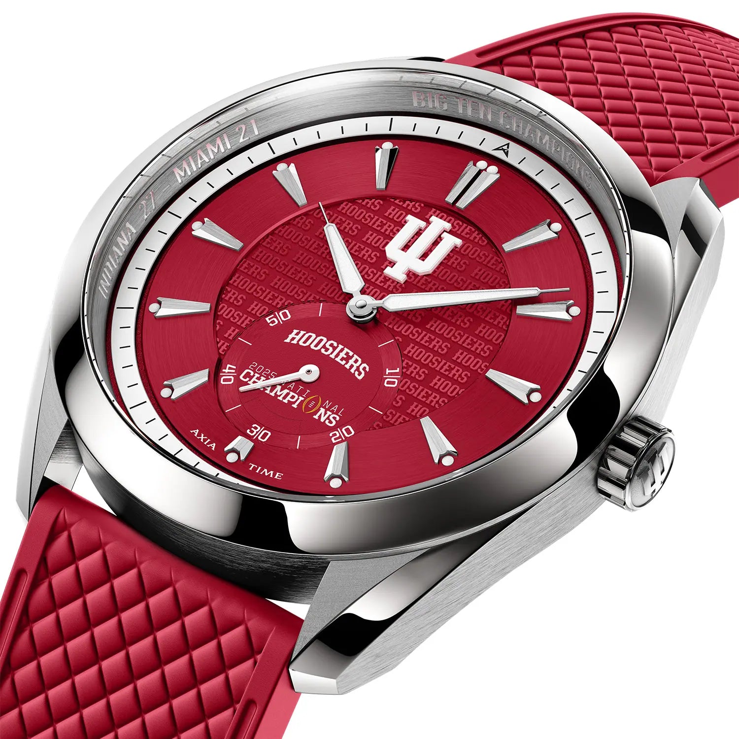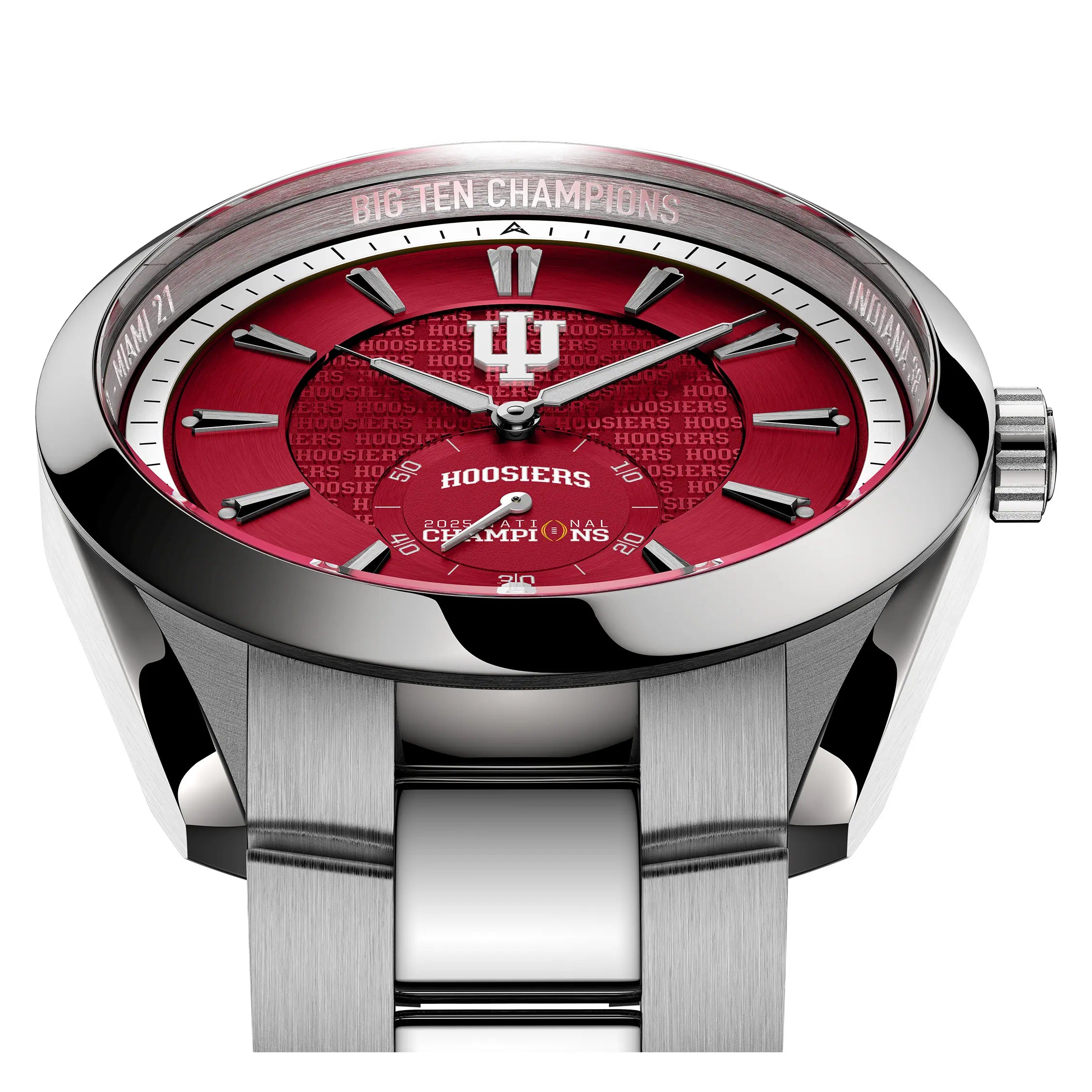 A Swiss Made automatic timepiece custom-designed to celebrate the Hoosier's undefeated season and first ever National Championship. The National Champion Lyythos features a custom Hoosier-inspired dial pattern, the official 2025 National Champion logo and a custom engraved rehaut (inner rim of the watch case) which chronicles their journey to the National Championship.