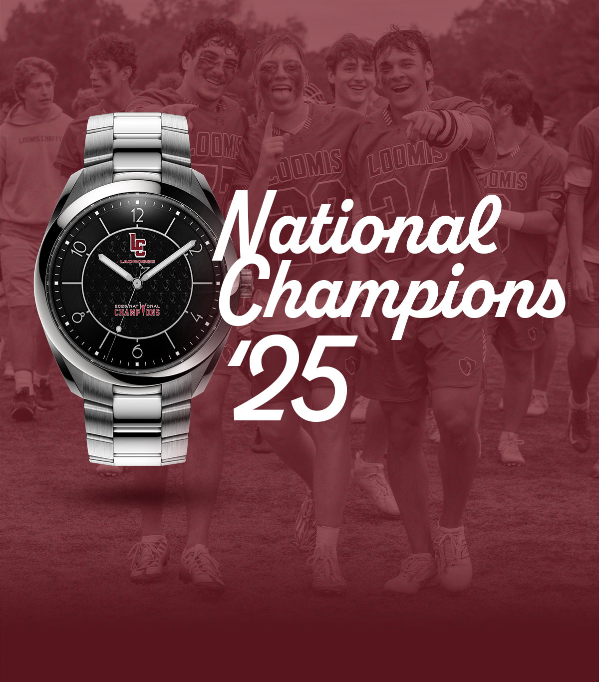 The Lythos is not only durable, it's also artfully designed to celebrate the historic 2025 season for the Loomis Chaffee lacrosse team. From the debossed Loomis Crane on the dial, to the custom National Champions graphic the Lythos is a visual reminder of the remarkable accomplishment it represents.
