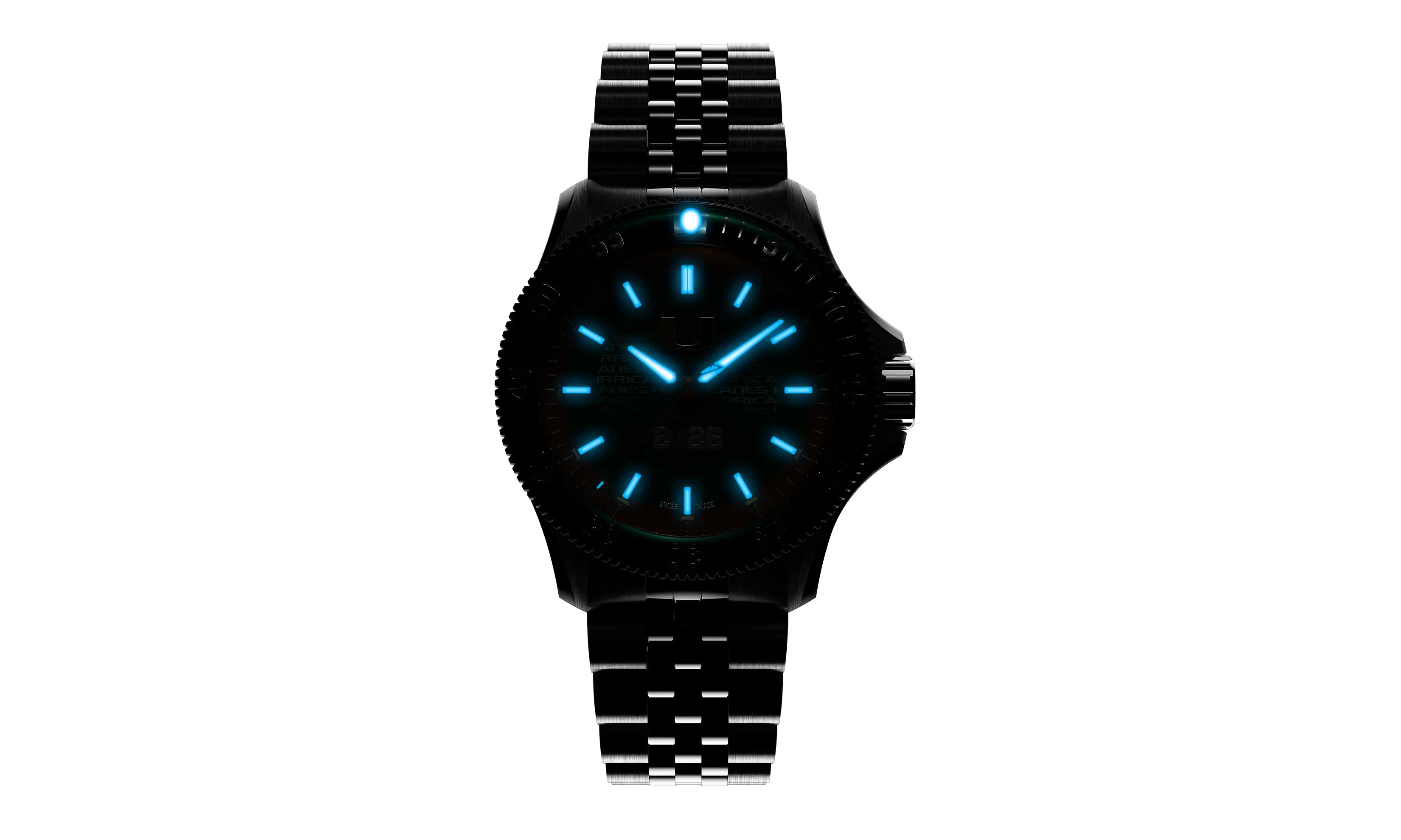 Witness the transition. Our use of potent X1 grade Super-LumiNova ensures critical time and markings are instantly visible at night.