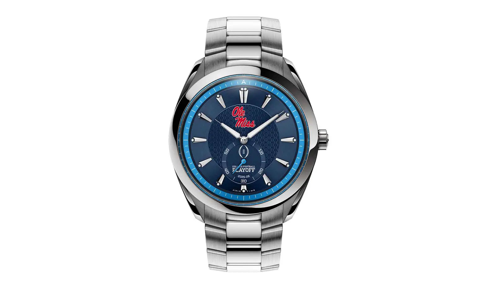 The OLE MISS LYTHOS CFP Edition is a Swiss Made tribute to the season that sent the Rebels to the College Football Playoff. LYTHOS is custom-designed for fans who want a wearable keepsake of their team reaching college football’s biggest stage.