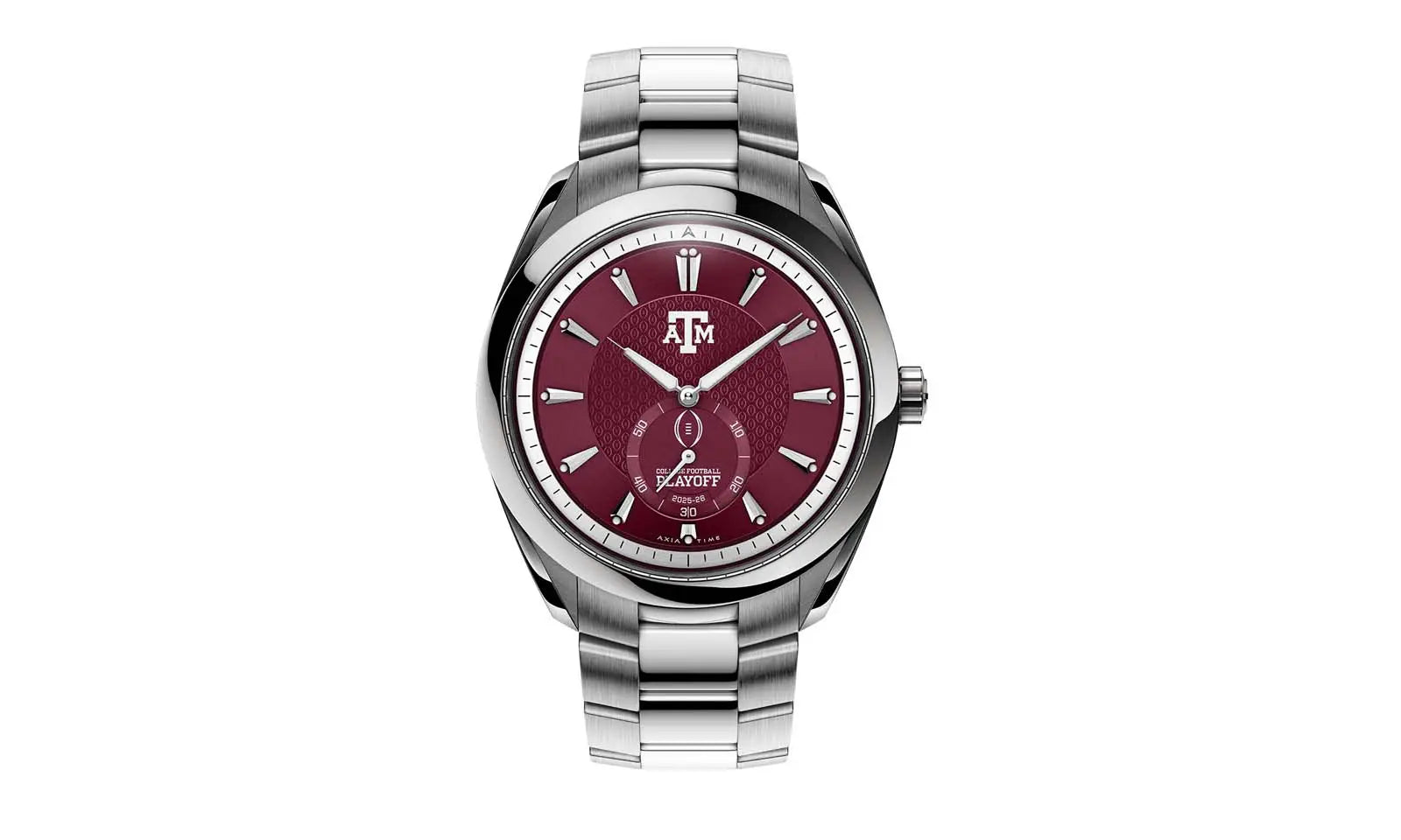 The TEXAS A&M LYTHOS CFP Edition is a Swiss Made tribute to the season that sent the Aggies to the College Football Playoff. LYTHOS is custom-designed for fans who want a wearable keepsake of their team reaching college football’s biggest stage.