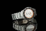 We go the extra mile with commemorative designs to celebrate – and elevate – what's important to you. Customizations for the CFP 2024-25 Texas Argos includes a matte white dial with a Longhorn logo at 12 o'clock, an etched repeating pattern with CFP logo, the College Football Playoff wordmark on the lower half of the dial, and "ROAD 2 ATLANTA" on the burnt orange chapter ring.